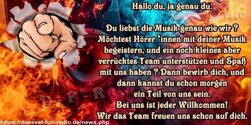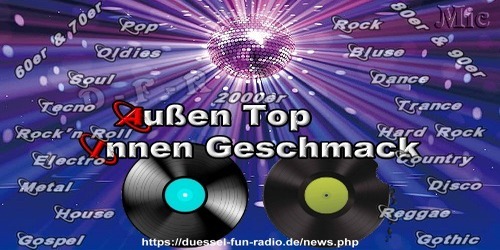 Uta und Christian (30.12.2025 22:59): Wir bedanken uns für die vielen schönen Sendungen mit euch und wünschen euch allen ein Jahr 2026, bei bester Gesundheit und mit viel Erfolg. Uta und Christian TeamChaos (20.12.2025 15:45): Am 21.12.2025 ist unsere Premiere vom Chaos Team :-) Anjamausi (05.11.2025 18:32): Ganz liebe Grüße an das Radio Team Tine32 (20.10.2025 20:17): Grüße an der WhatsApp Gruppe gemeinsam sind wir stark Tine32 (20.10.2025 20:10): Ich möchte Grüße an Henry den radio Moderator 9 (16.09.2025 15:31): Herzlich Willkommen im DUESSEL-FUN-RADIO genX-Hosting (13.08.2025 13:15): Guten Tag